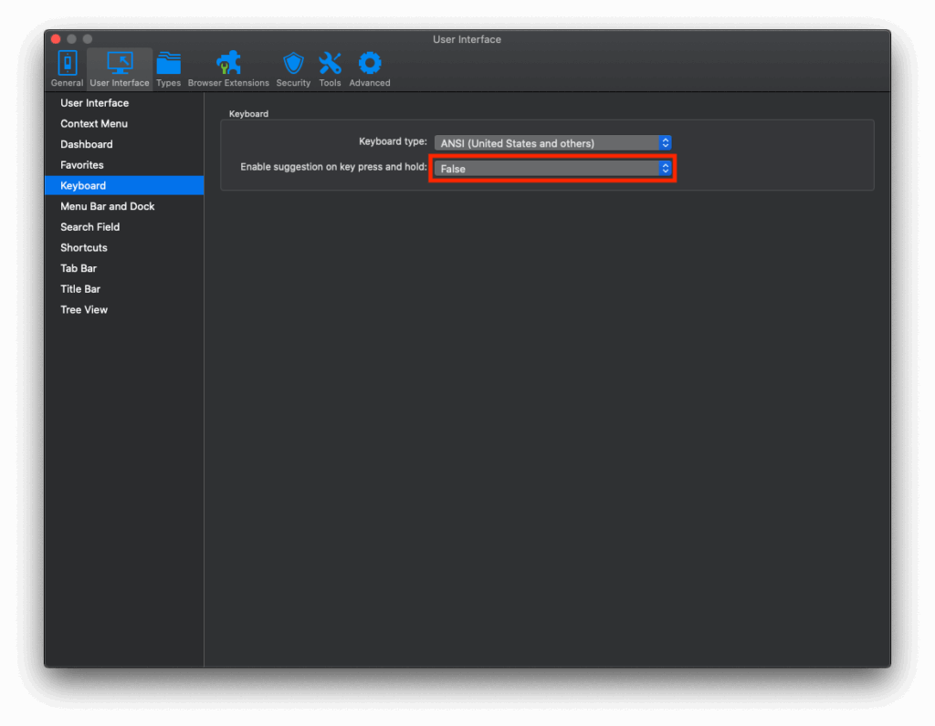 defaults write -g ApplePressAndHoldEnabled -bool false